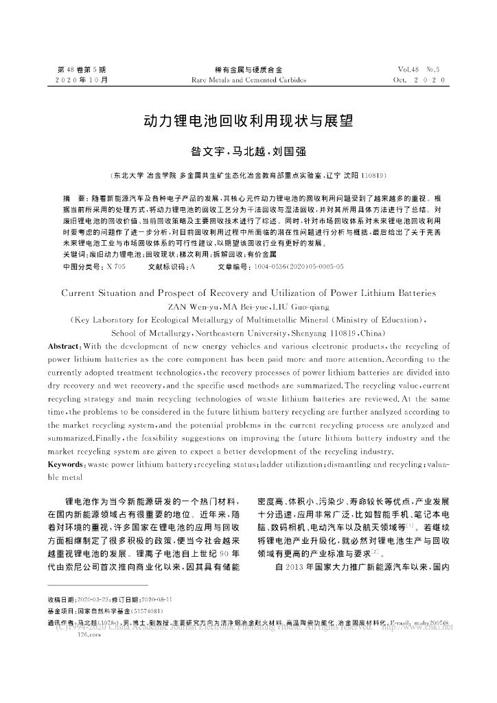 动力锂电池回收利用现状与展望.pdf