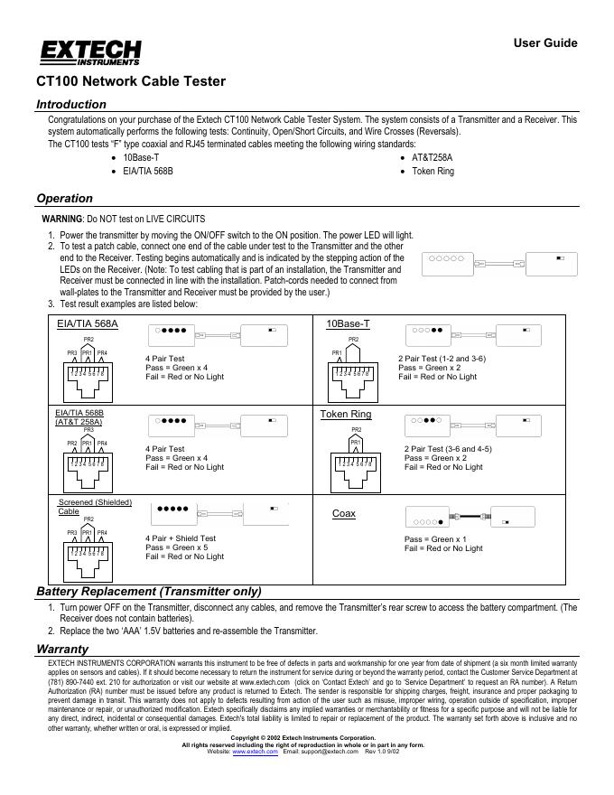 EXTECH INSTRUMENTS CT100 Network Cable Tester 用户指南.pdf