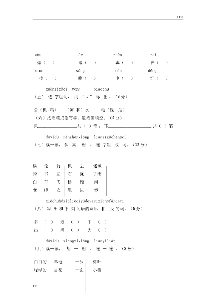 部编语文一年级上册期末复习试卷 (10).doc