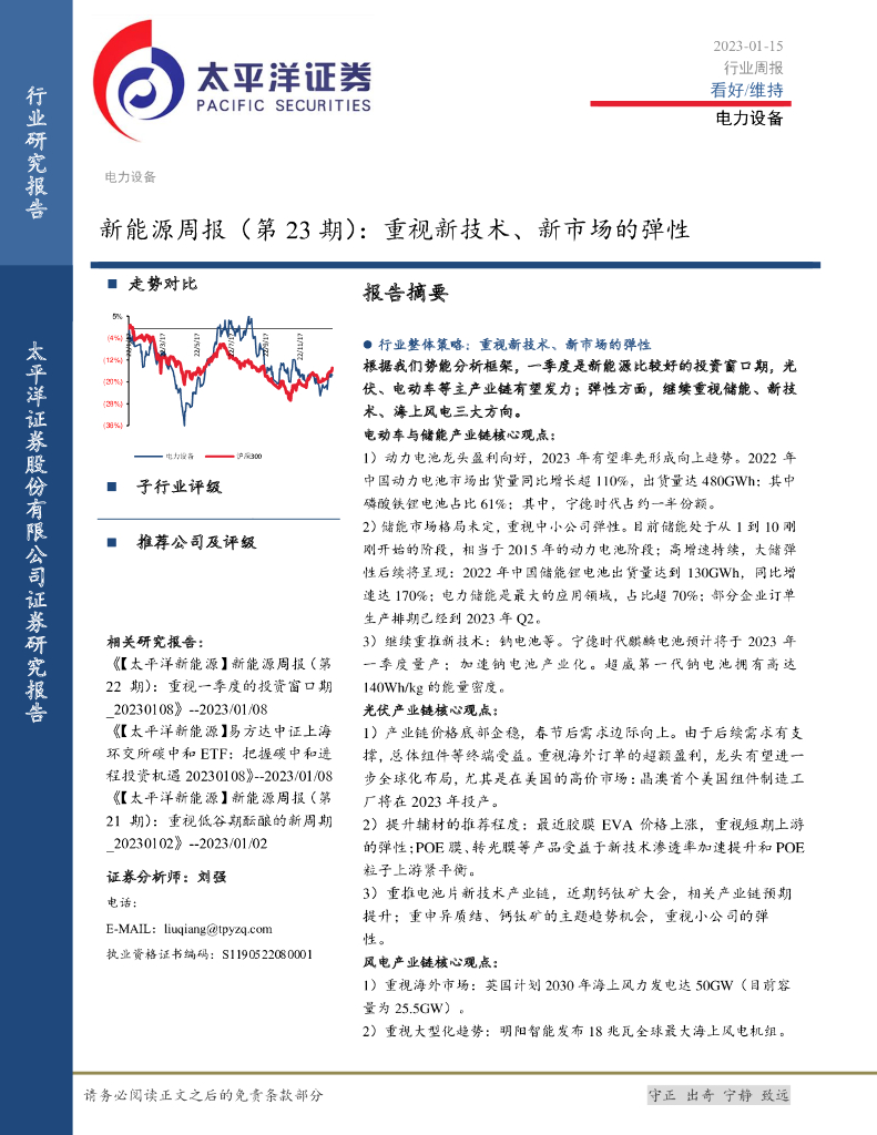 太平洋证券:新能源周报(第23期):重视新技术、新市场的弹性.pdf