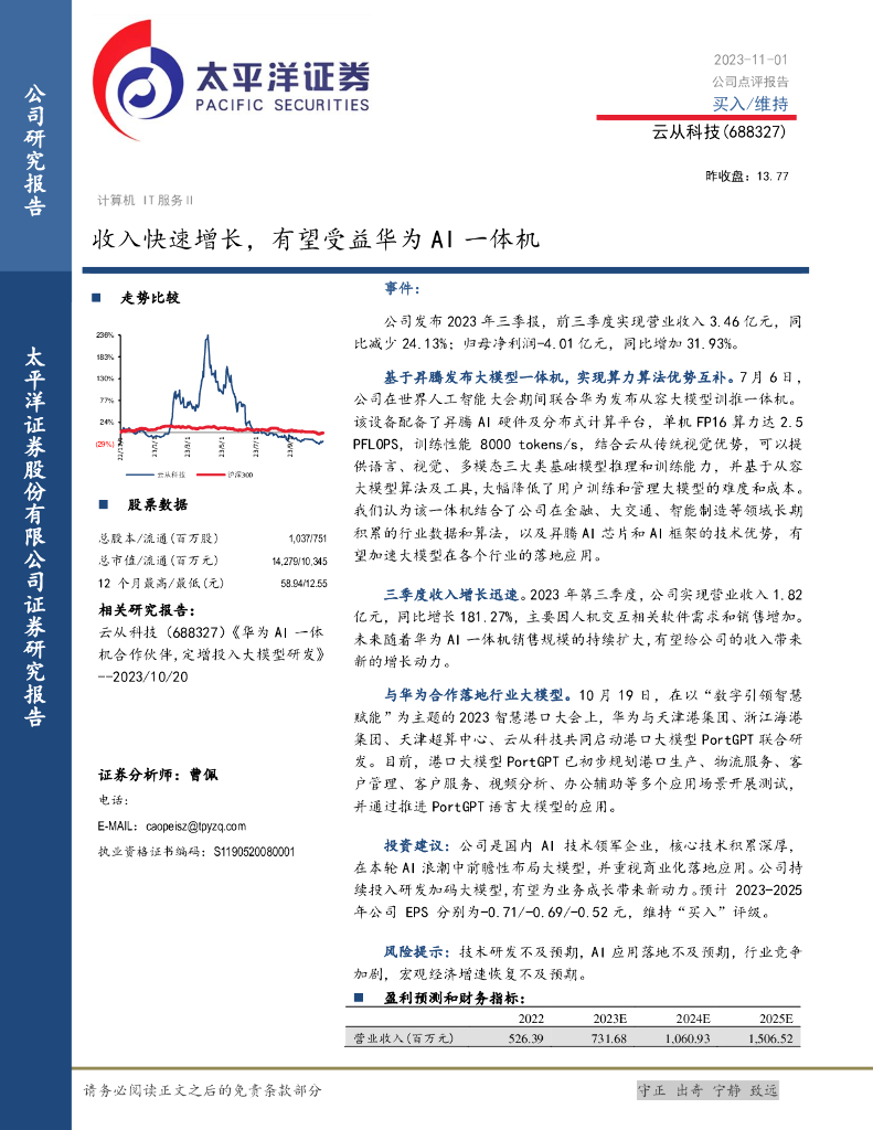 太平洋证券:云从科技(688327)-收入快速增长,有望受益华为AI一体机.pdf