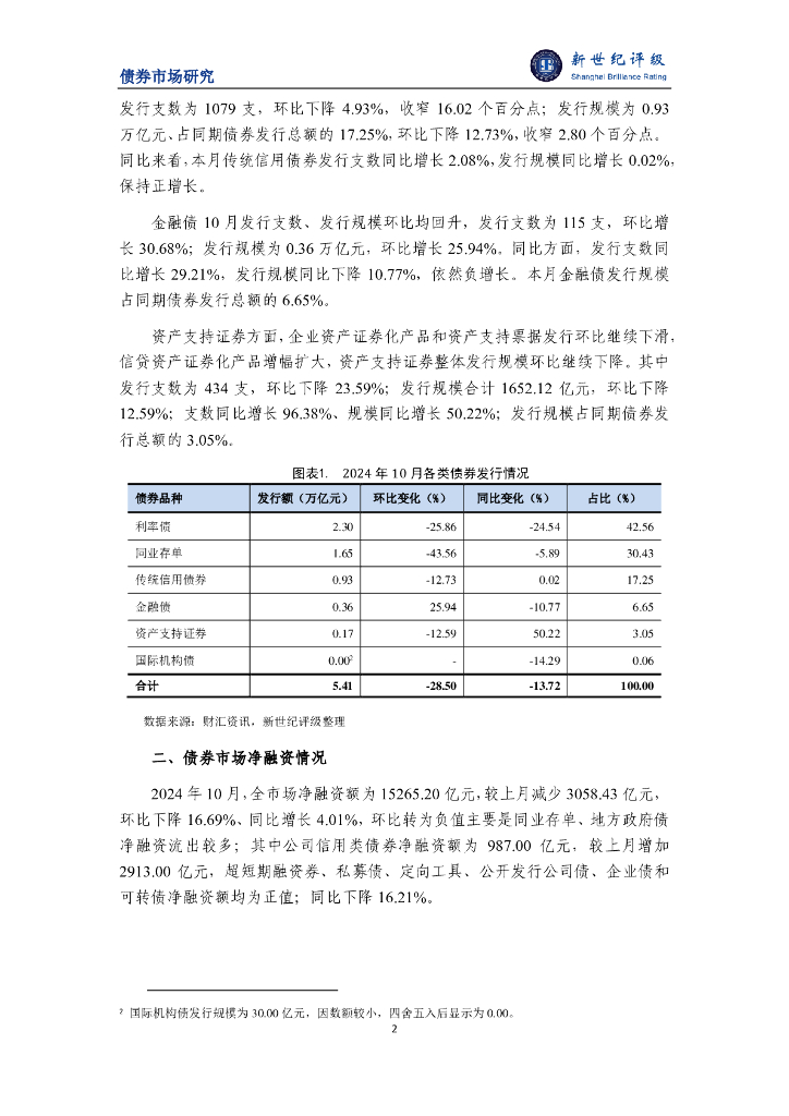 新世纪评级:多数债券发行下滑 债市规模环比明显回落——2024年10月债券市场发行概况与政策汇总.pdf