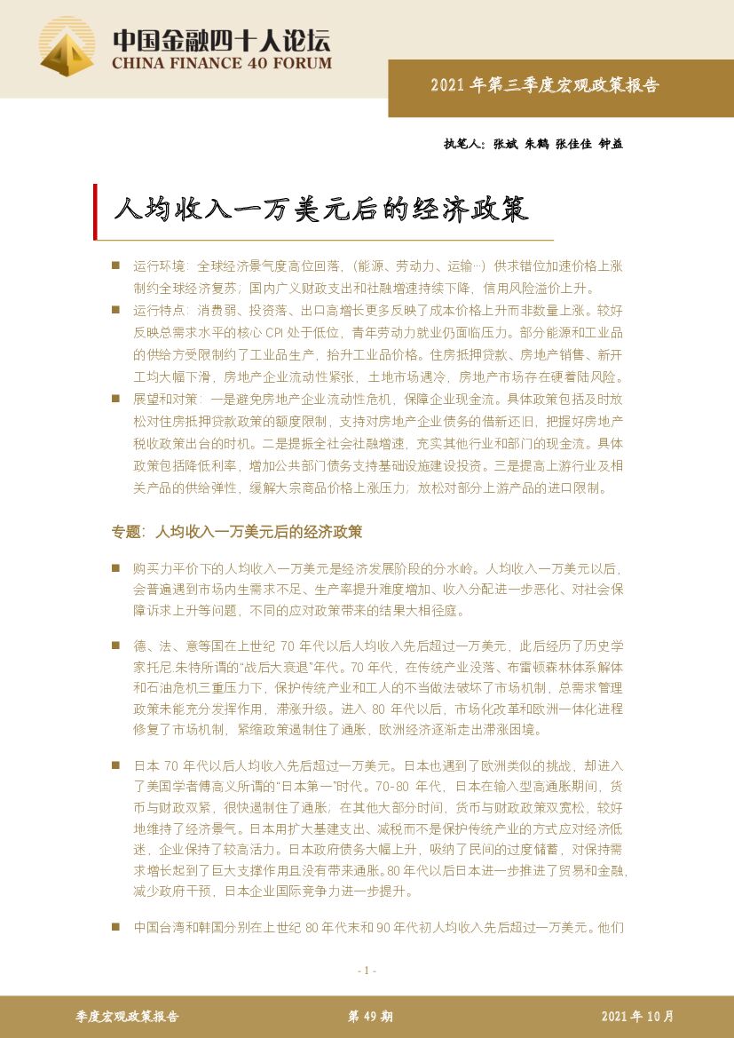 金融四十人论坛:2021年第三季度宏观政策报告:人均收入一万美元后的经济政策.pdf