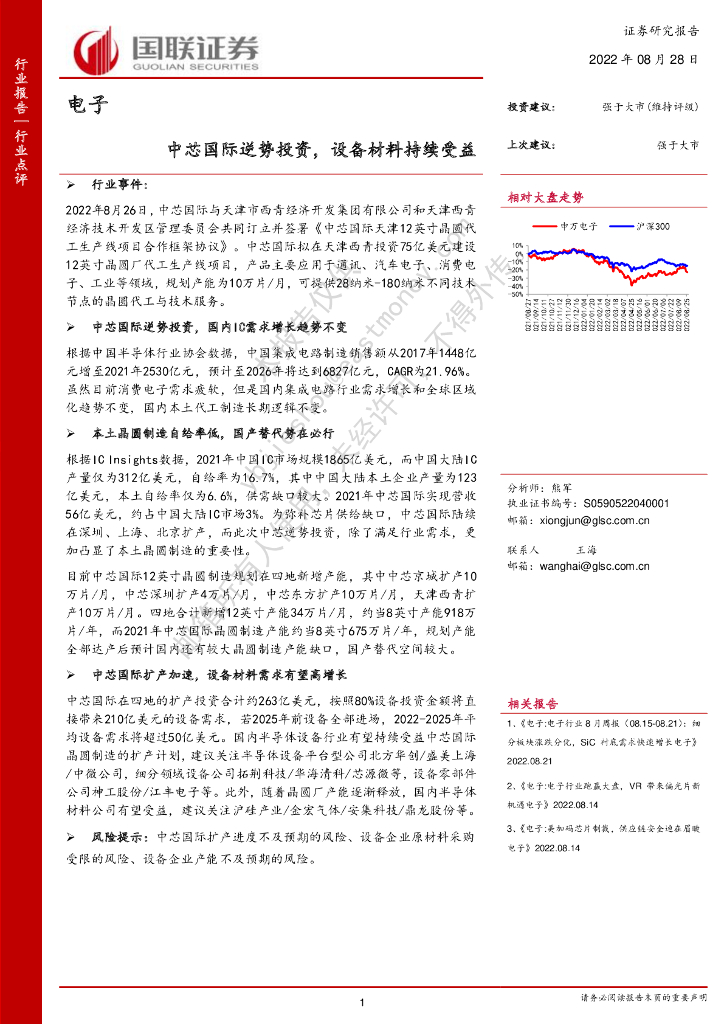 国联证券:电子:中芯国际逆势投资,设备材料持续受益.pdf