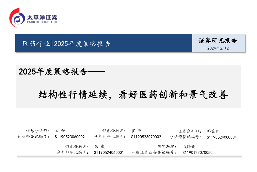 太平洋证券:医药行业2025年度策略报告:结构性行情延续,看好医药创新和景气改善.pdf