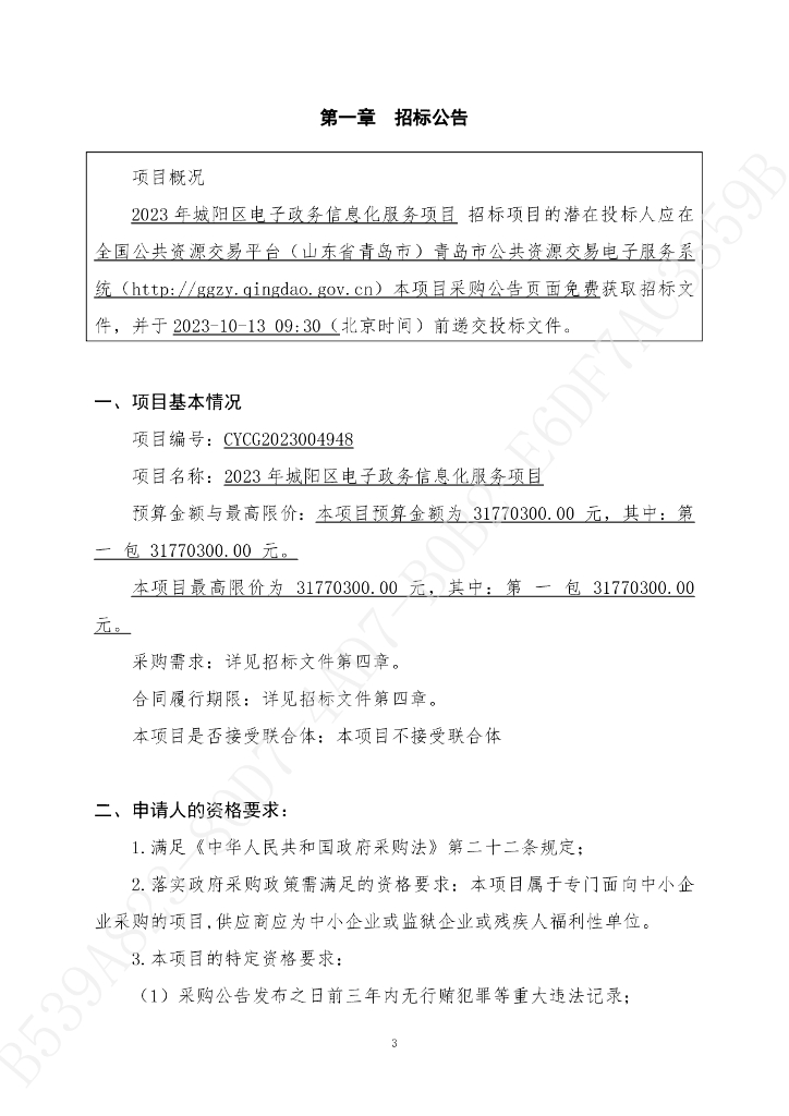 数字政府-青岛市城阳区2023年城阳区电子政务信息化服务项目招标文件.pdf