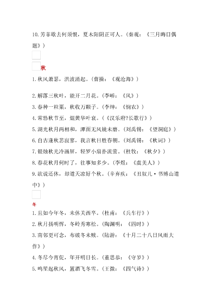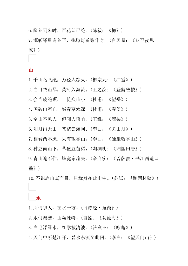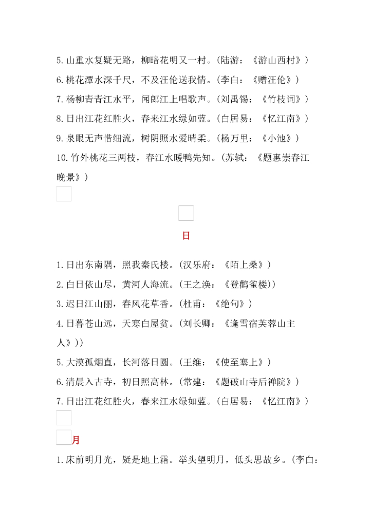 古诗词整理: 春、夏、秋、冬、山、水、日、月、风、花、雨、雪.doc