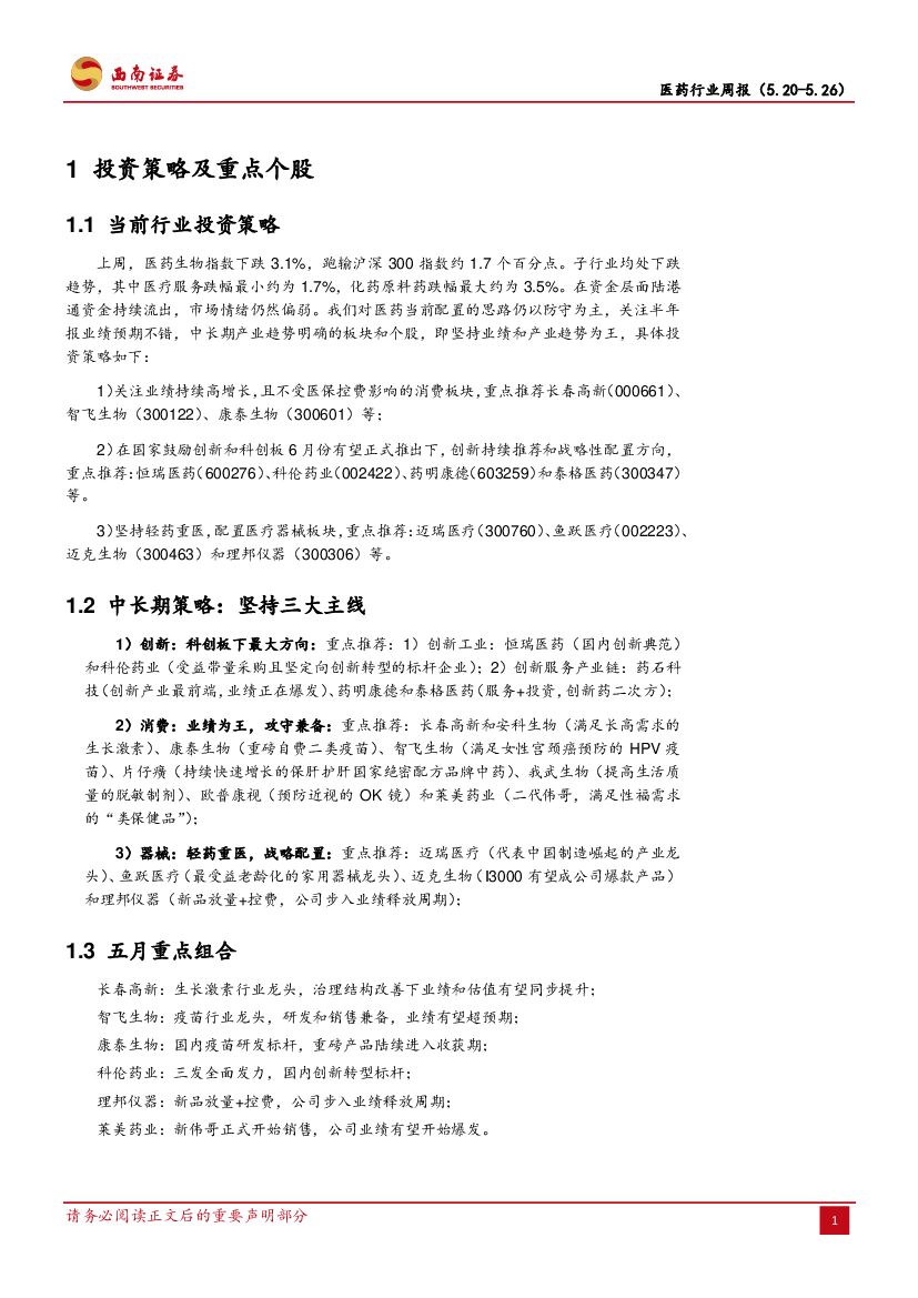 西南证券:医药行业周报:仍偏防守,重点关注龙头、消费或经营拐点个股.pdf