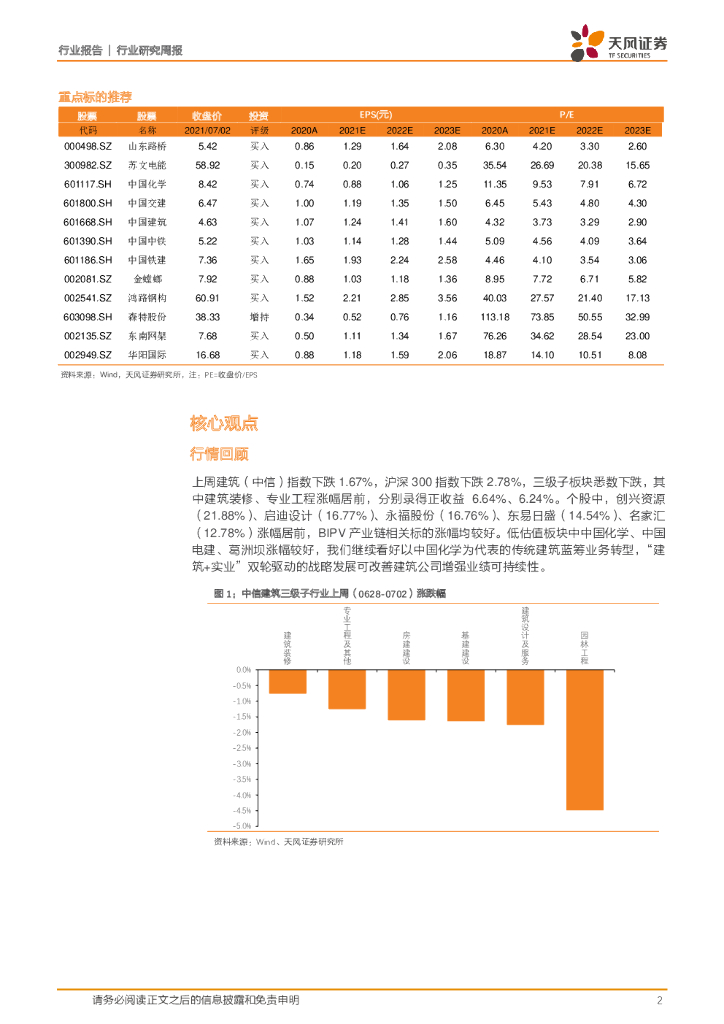天风证券:建筑装饰行业研究周报:行业景气有望延续,重点推荐中报超预期和“建筑+”投资机会.pdf
