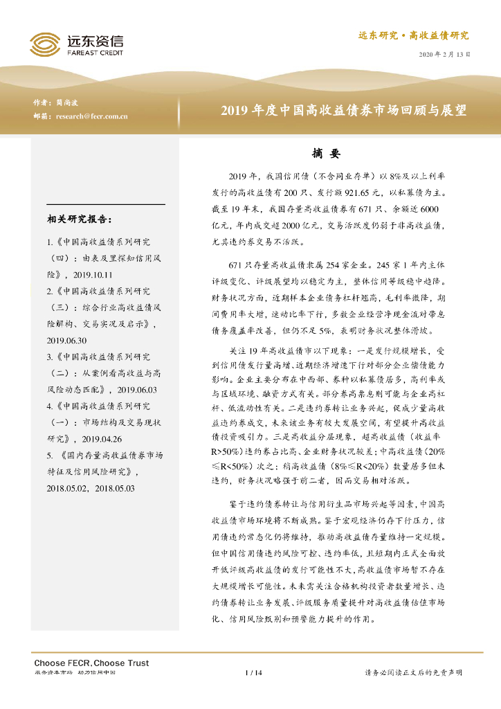 远东资信:2019年度中国高收益债券市场回顾与展望报告.pdf