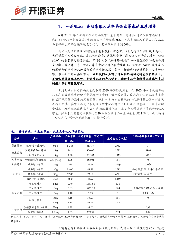 开源证券:医药生物行业周报:关注集采下原料药企业的业绩增量和医疗服务投资价值.pdf