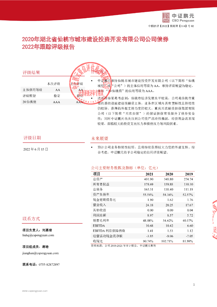 鹏元:2020年湖北省仙桃市城市建设投资开发有限公司公司债券2022年跟踪评级报告.pdf