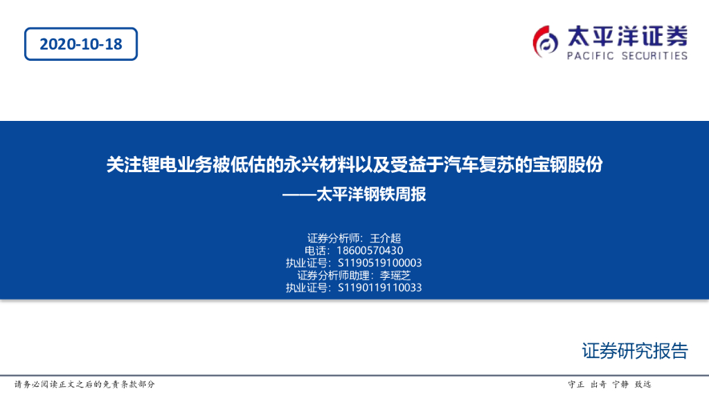 太平洋证券:太平洋钢铁周报:关注锂电业务被低估的永兴材料以及受益于汽车复苏的宝钢股份.pdf