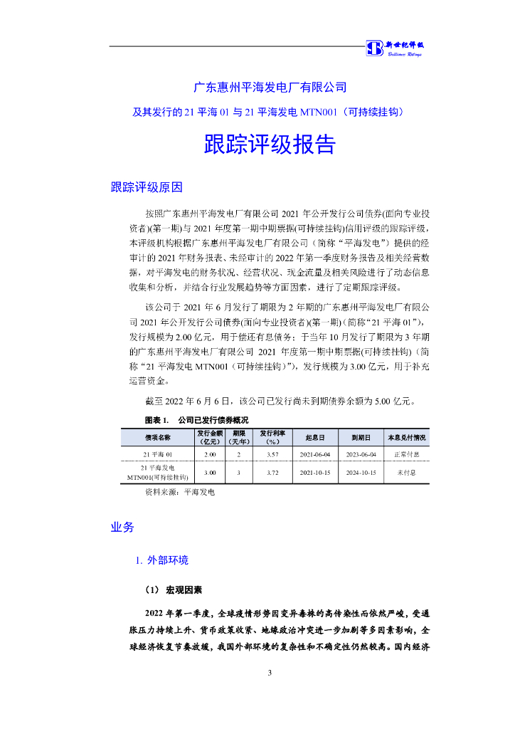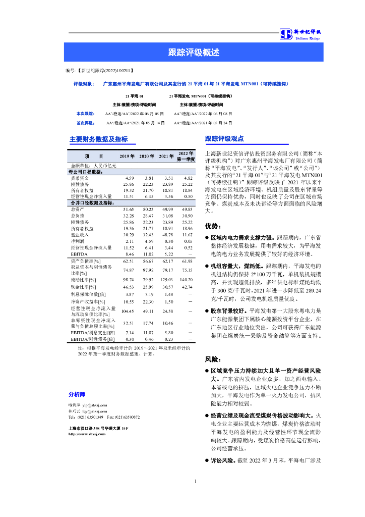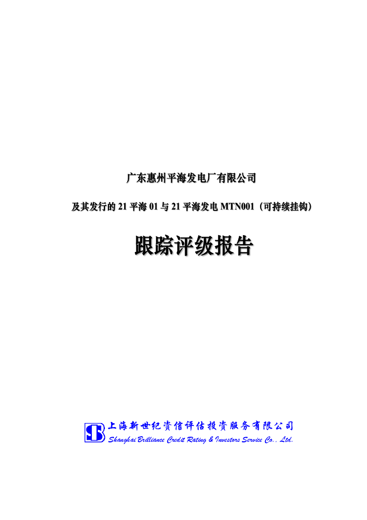 新世纪:广东惠州平海发电厂有限公司及其发行的21平海01与21平海发电MTN001(可持续挂钩)跟踪评级报告.pdf