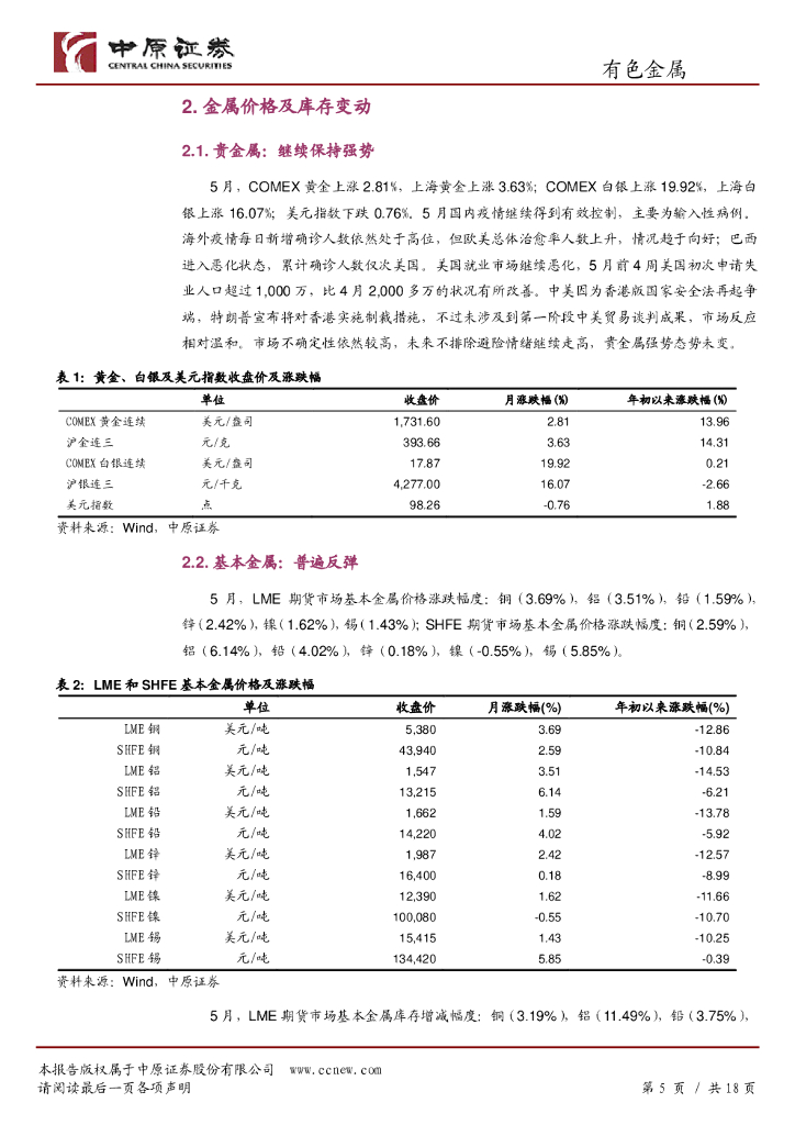 中原证券:有色金属行业月报:经济逐步复苏,金属价格企稳回升.pdf