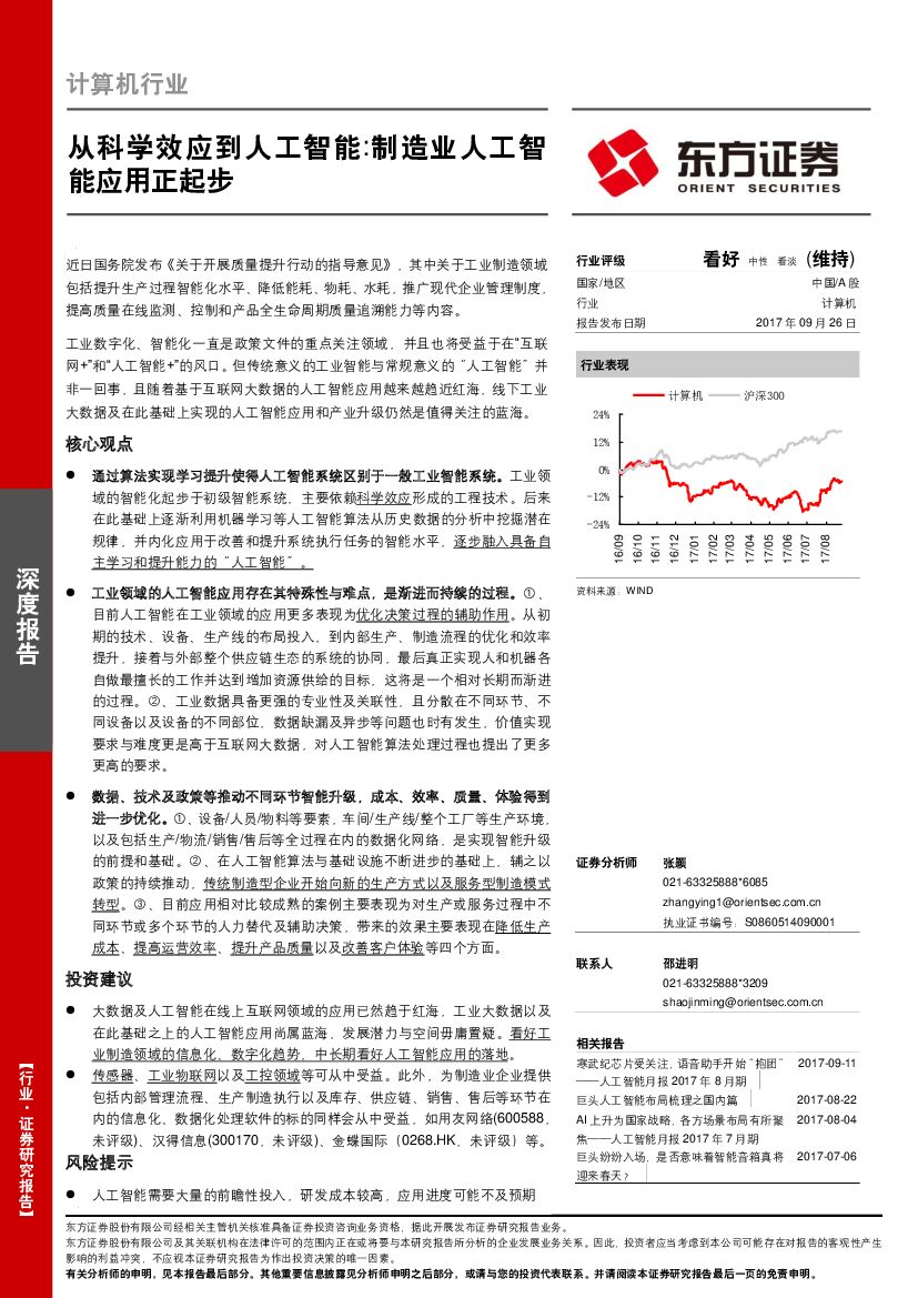 东方证券:计算机行业:从科学效应到人工智能:制造业人工智能应用正起步.pdf