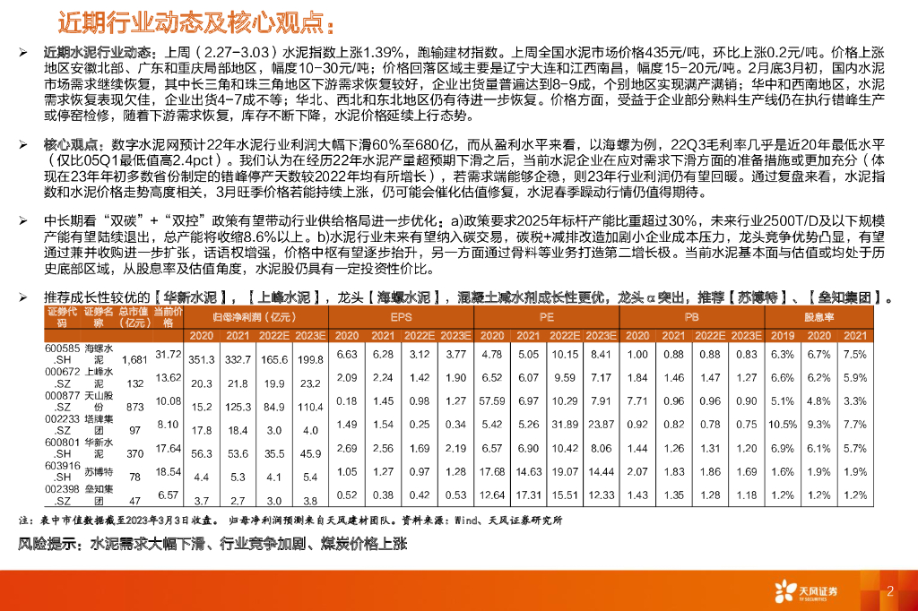 天风证券:水泥行业研究周报:需求恢复符合预期,供给端错峰助推价格延续上行.pdf