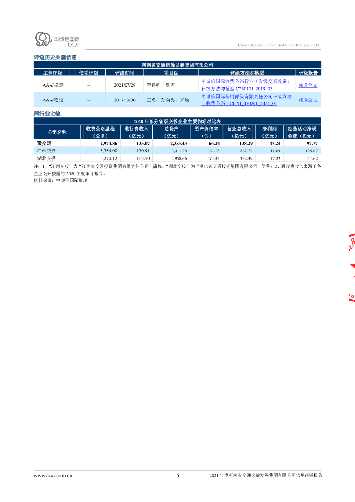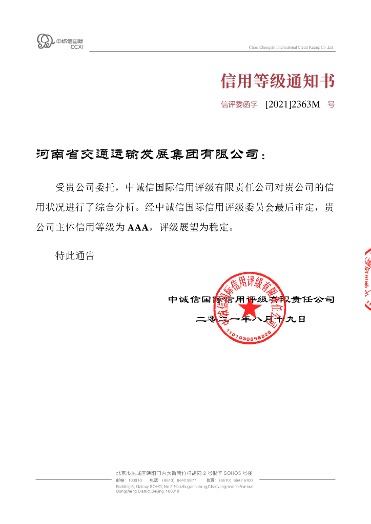 中诚信:河南省交通运输发展集团有限公司2021年度信用评级报告.pdf