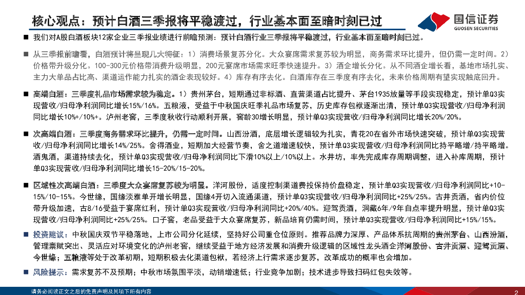 国信证券:2023年白酒行业三季报业绩前瞻:周期底部,蓄能未来,积极看好四季度行情.pdf
