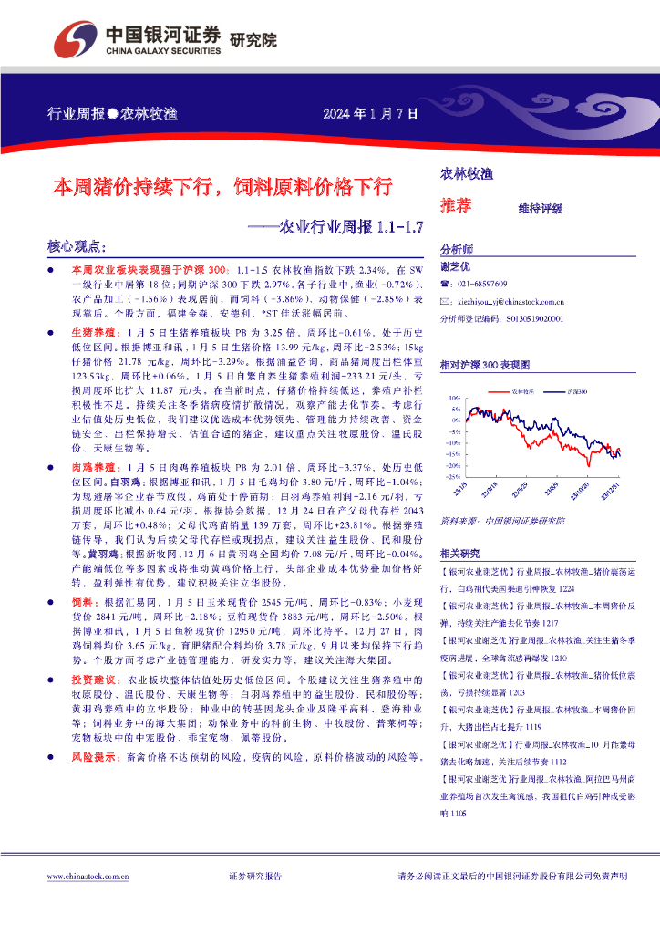 中国银河:农业行业周报:本周猪价持续下行,饲料原料价格下行.pdf