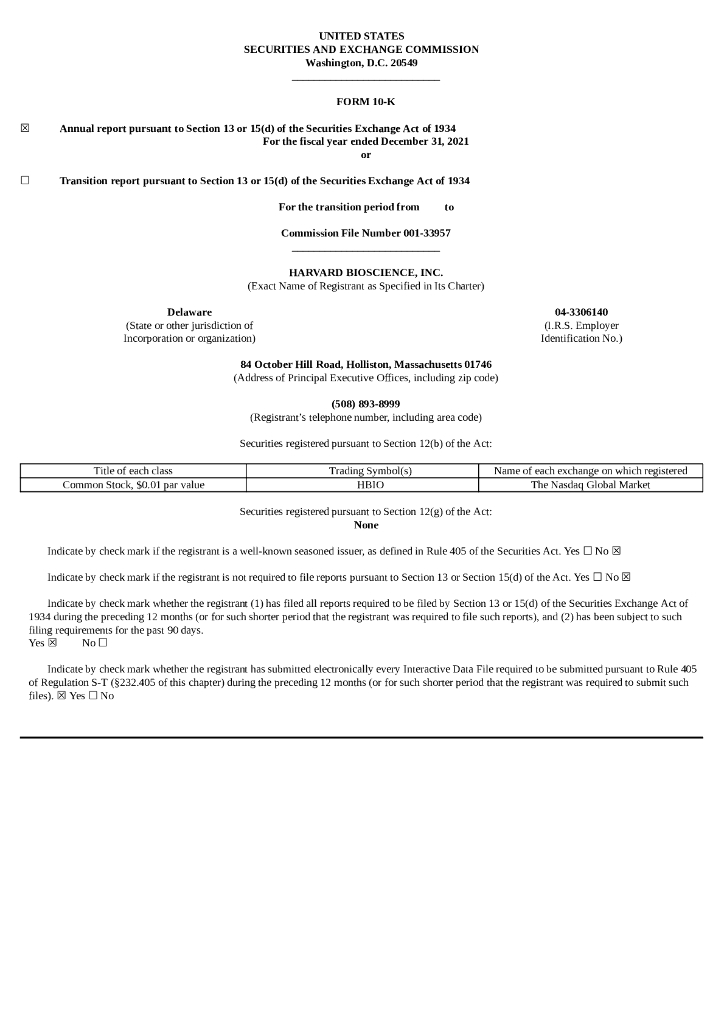 Harvard Bioscience Inc.(HBIO)2021财年年度报告(英文版).pdf