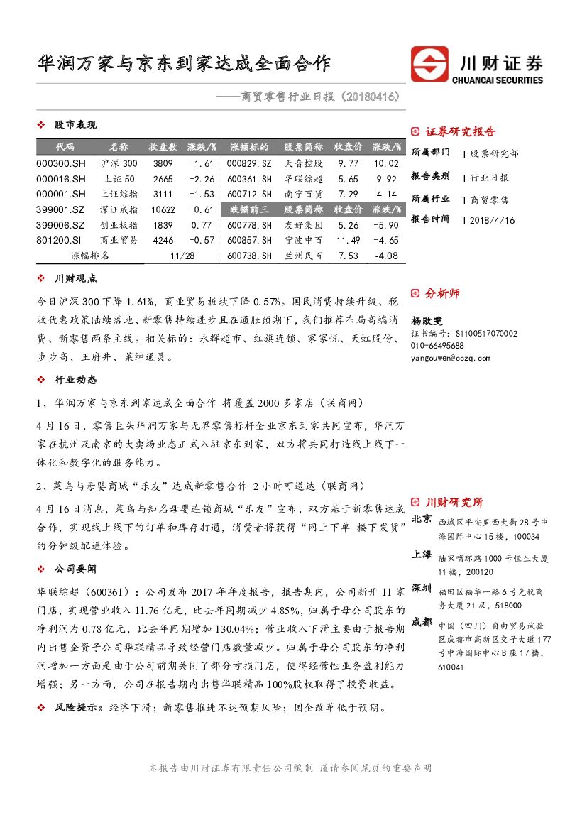 川财证券:商贸零售行业日报:华润万家与京东到家达成全面合作.pdf
