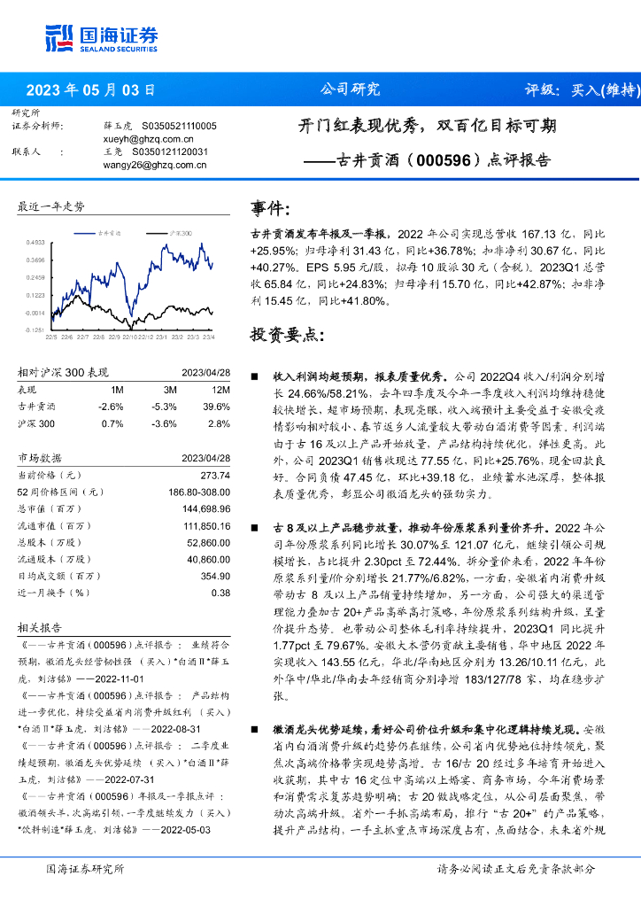 国海证券:古井贡酒(000596)-点评报告:开门红表现优秀,双百亿目标可期.pdf