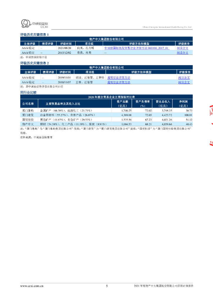 中诚信:物产中大集团股份有限公司2021年度主体信用评级报告.pdf