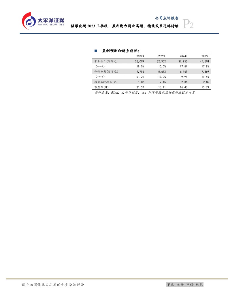 太平洋证券:福耀玻璃2023三季报:盈利能力同比高增,稳健成长逻辑持续.pdf