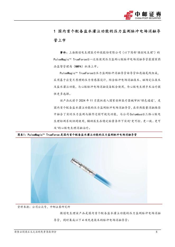 中邮证券:医药生物行业:国内首个配备盐水灌注功能的压力监测脉冲电场消融导管上市.pdf