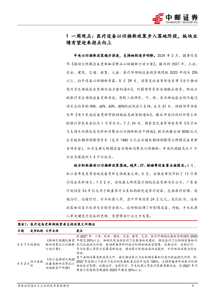 中邮证券:医药生物行业报告——医疗设备以旧换新政策步入落地阶段,板块业绩有望迎来拐点向上.pdf
