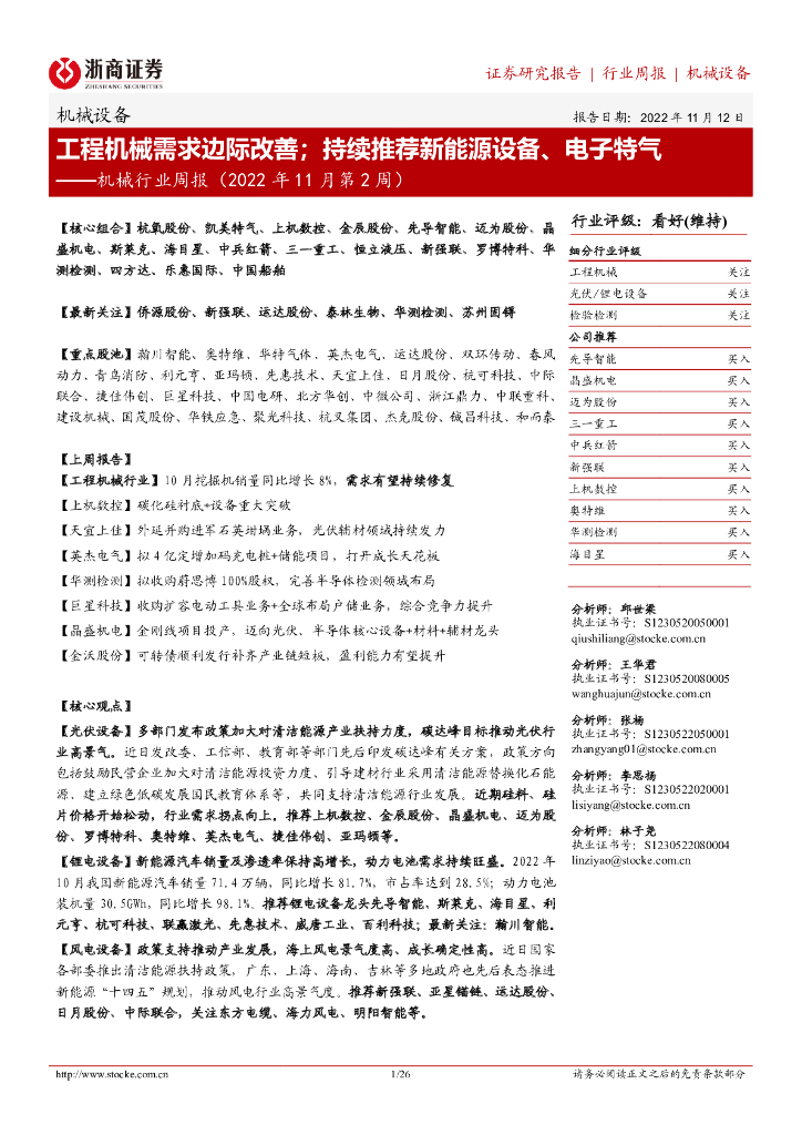 浙商证券:机械行业周报(2022年11月第2周):工程机械需求边际改善;持续推荐新能源设备、电子特气.pdf