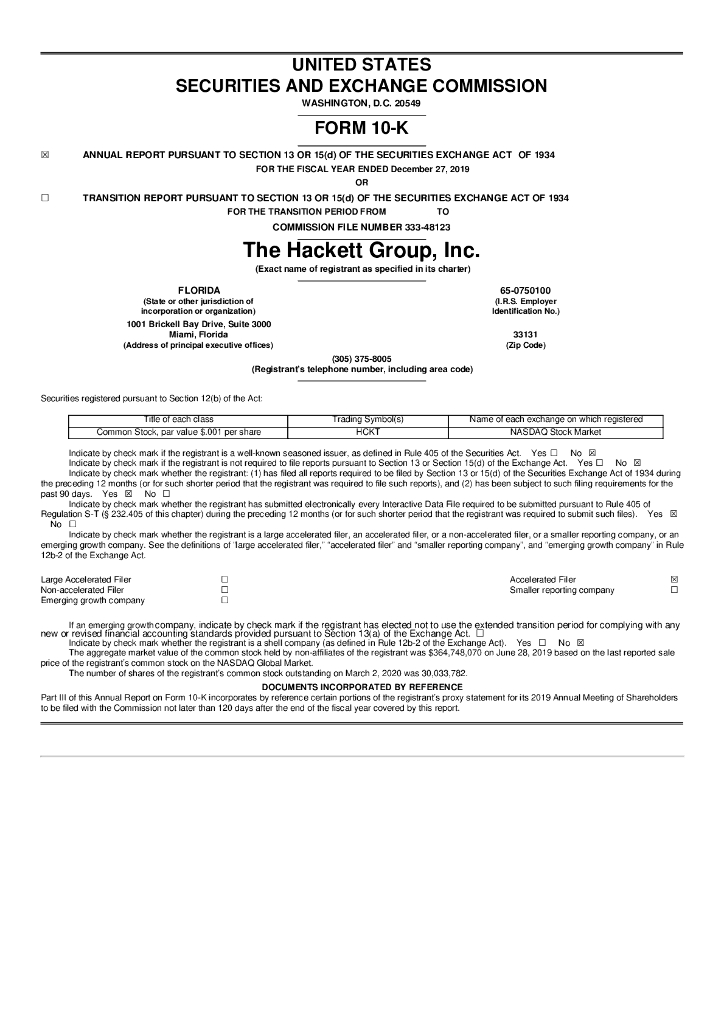 Hackett Group Inc(HCKT)2020财年年度报告(英文版).pdf
