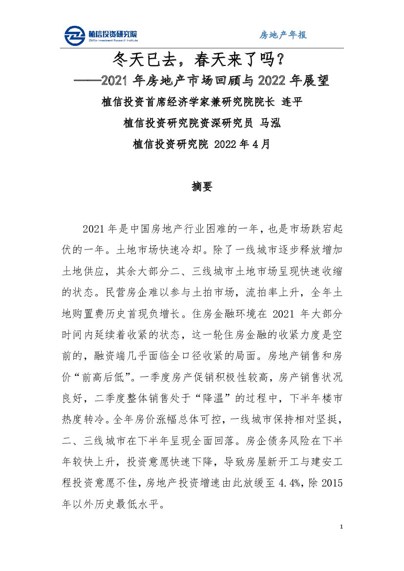 植信投资研究院:2021年房地产市场回顾与2022年展望.pdf