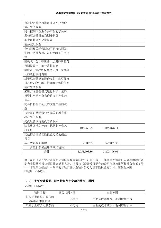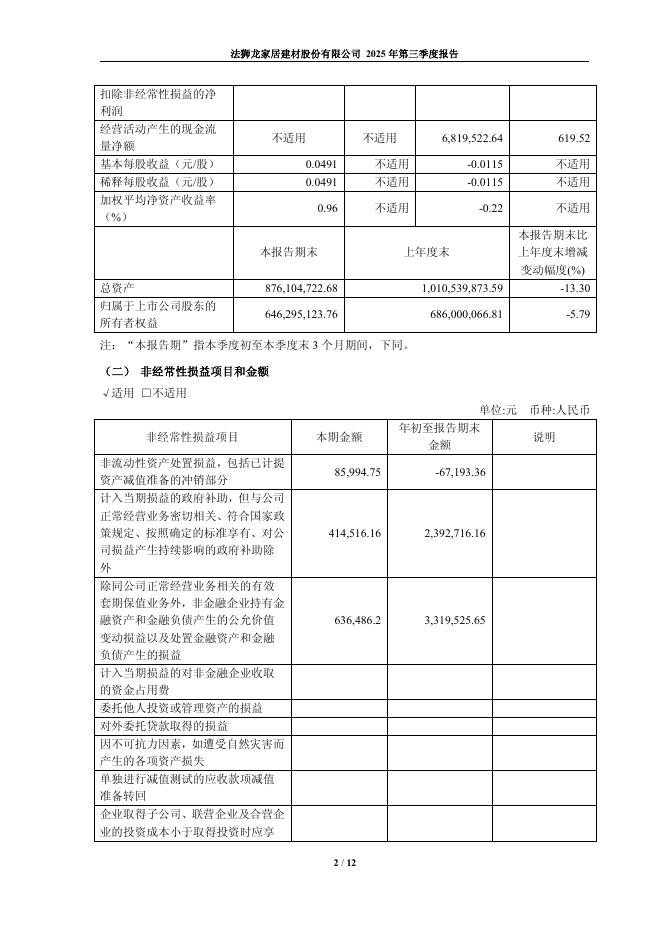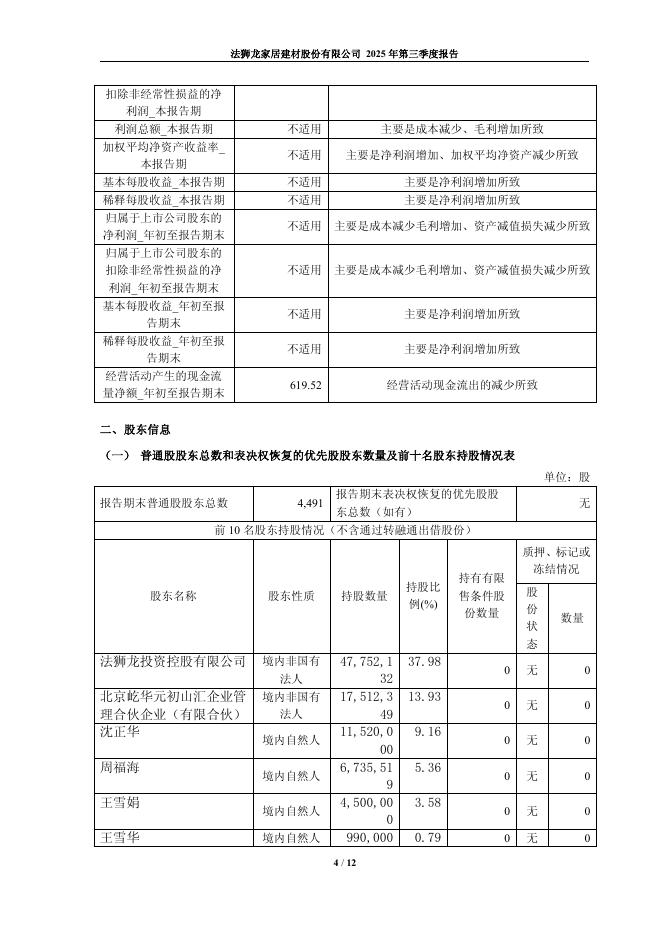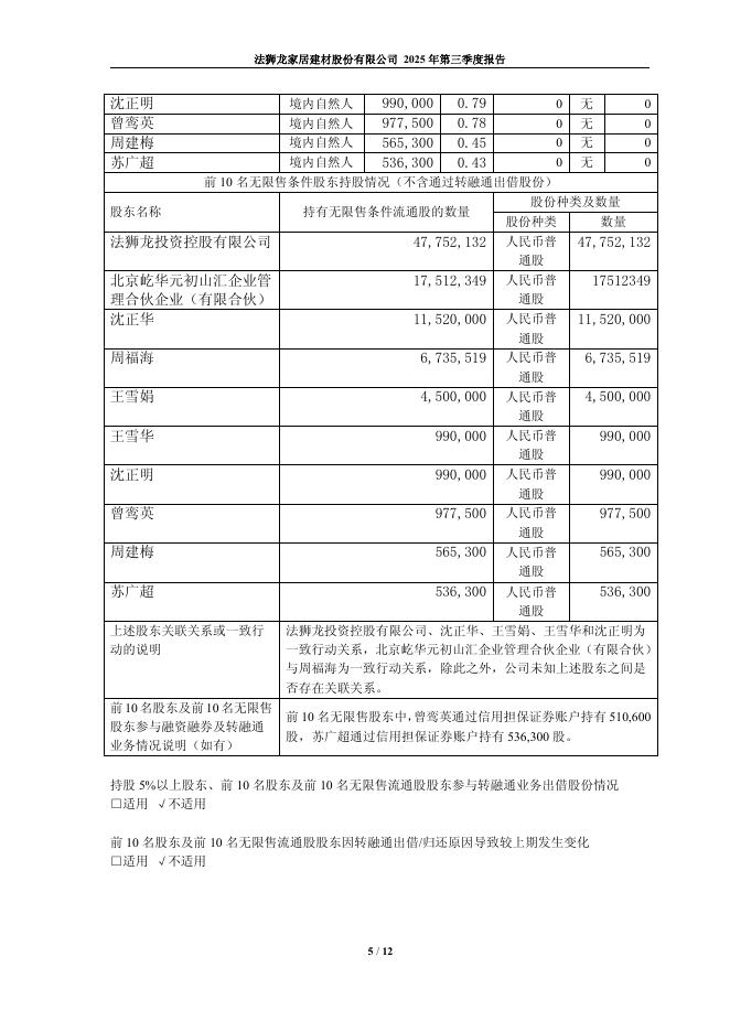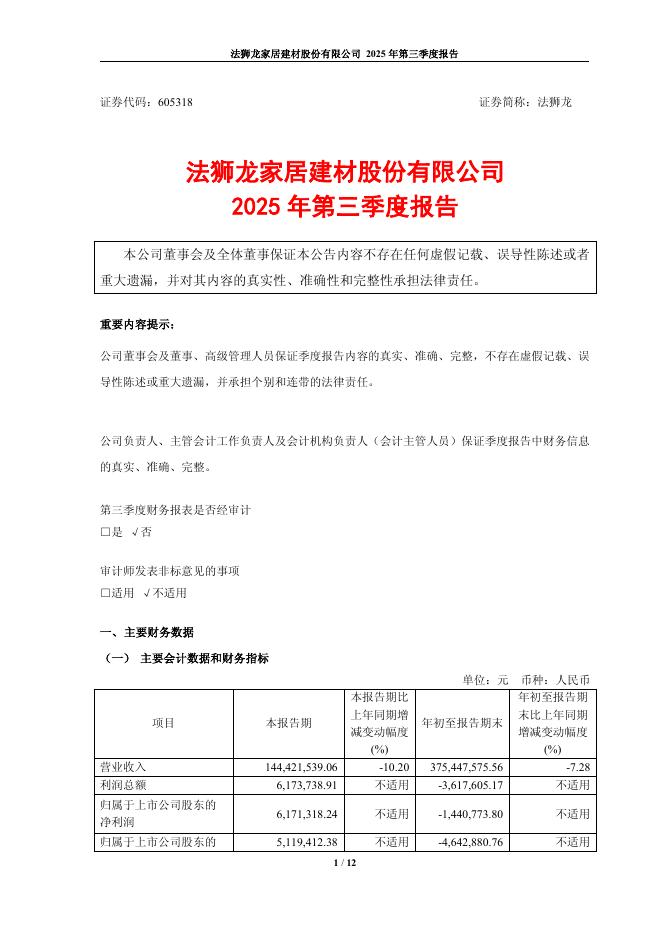 605318-法狮龙:法狮龙家居建材股份有限公司2025年第三季度报告.pdf
