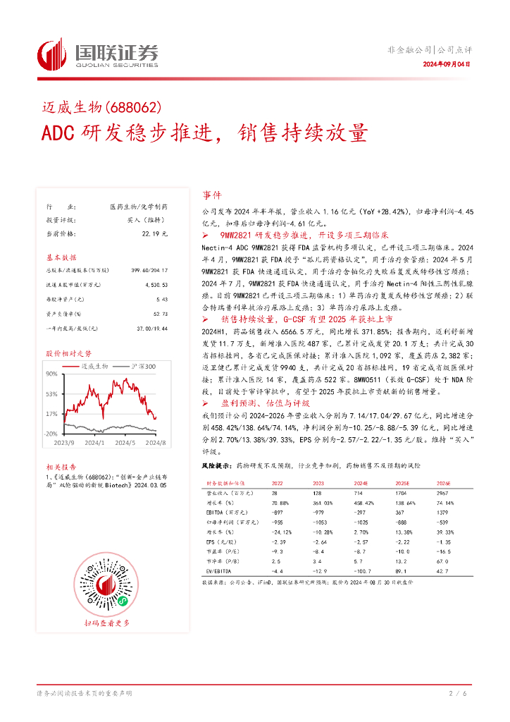 国联证券:迈威生物(688062)-ADC研发稳步推进,销售持续放量.pdf