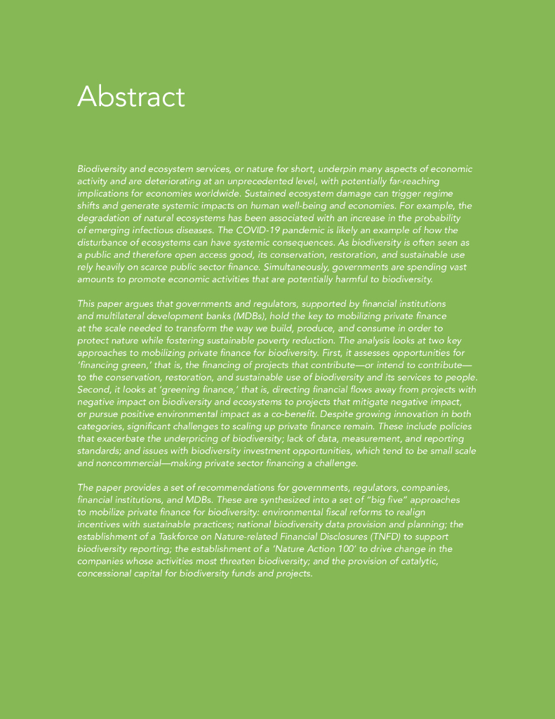 世界银行:为自然动员私人资金:世界银行集团关于生物多样性和生态系统服务私人融资的文件(英文版).pdf