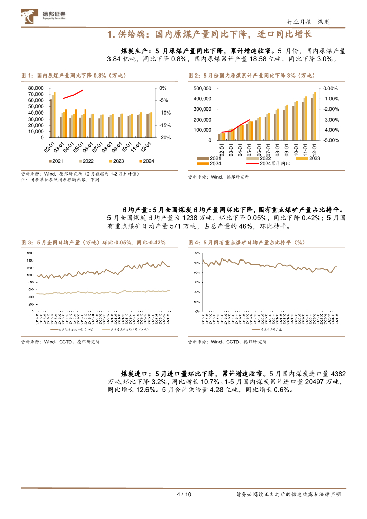 德邦证券:煤炭行业月报:国内供给维持弱势,需求有望加速释放.pdf