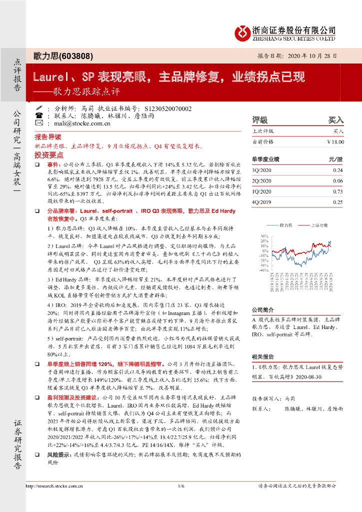 浙商证券:歌力思(603808)-跟踪点评:Laurel、SP表现亮眼,主品牌修复,业绩拐点已现.pdf