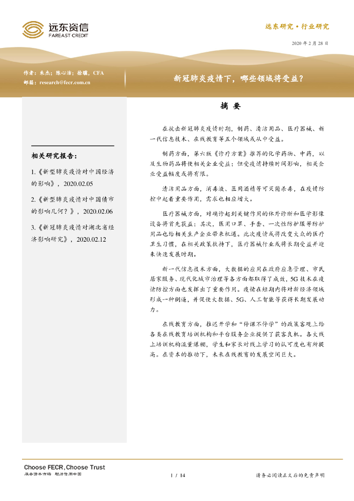 远东资信:新冠肺炎疫情下,哪些领域将受益?.pdf