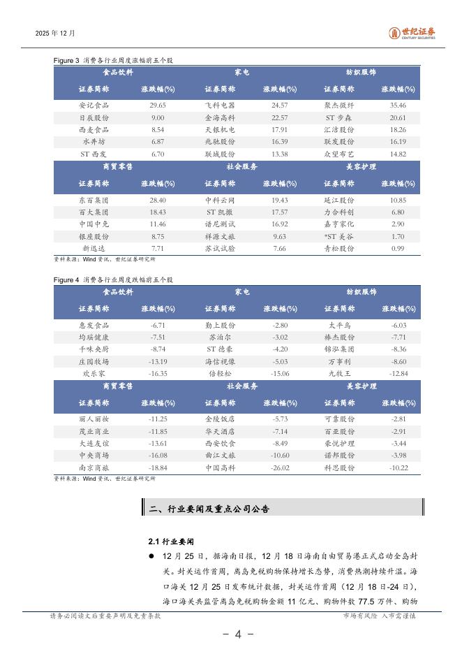 世纪证券:大消费行业周报(12月第4周):海南封关免税放量.pdf