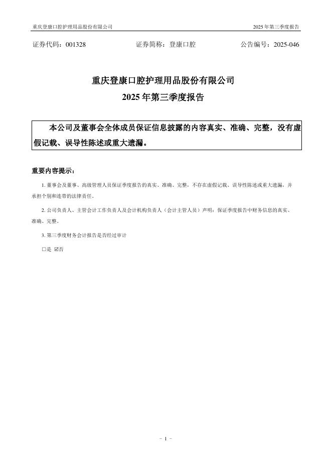 001328-登康口腔:2025年三季度报告.pdf