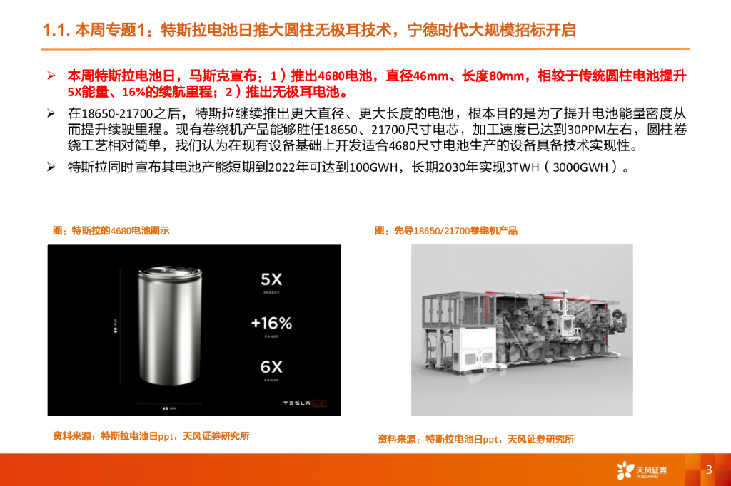 天风证券:机械设备行业研究周报:特斯拉电池日推大圆柱无极耳技术,宁德时代大规模招标开启.pdf