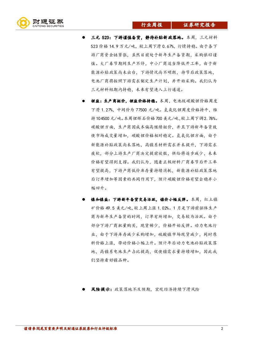 财通证券:锂钴镍周报:MB钴价继续下探,钴盐盈利持续向好.pdf