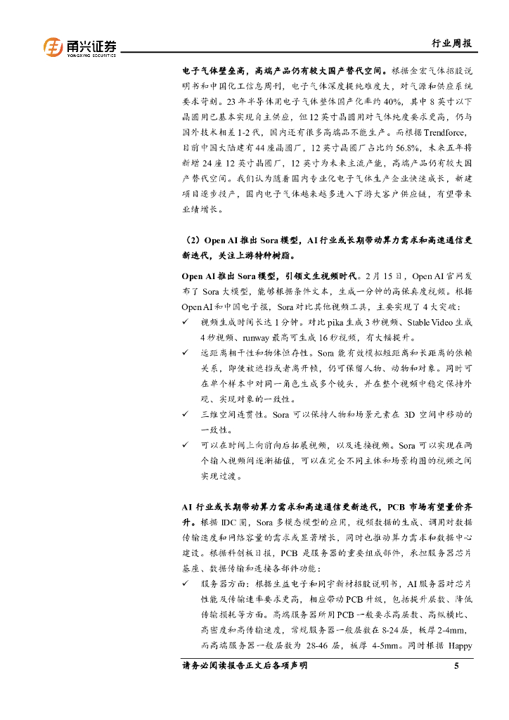 甬兴证券:化工新材料行业周报:OpenAI推出Sora模型,AI升级迭代催生特种树脂需求.pdf