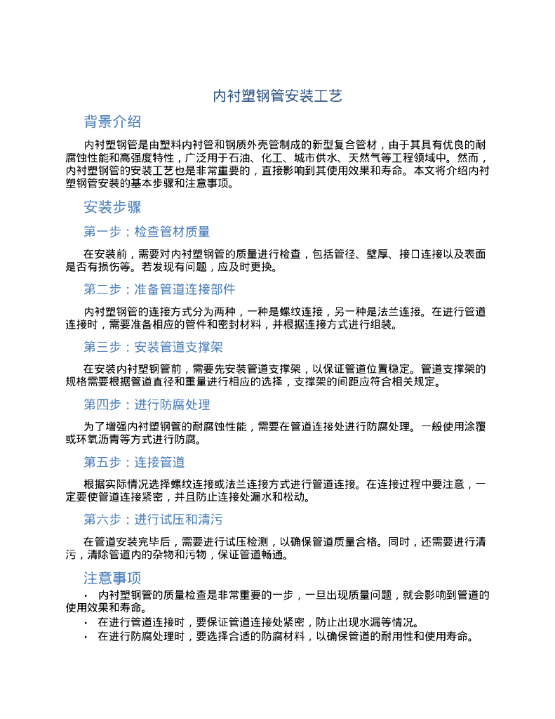 内衬塑钢管安装工艺.doc