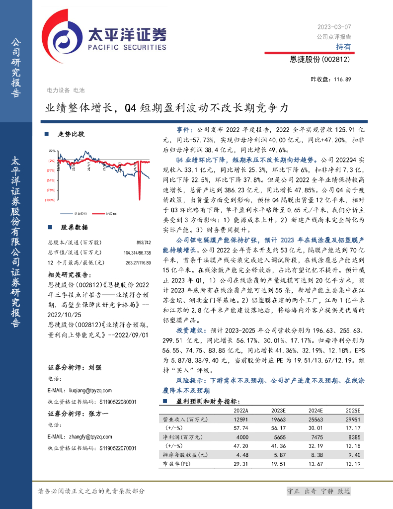太平洋证券:恩捷股份(002812)-业绩整体增长,Q4短期盈利波动不改长期竞争力.pdf