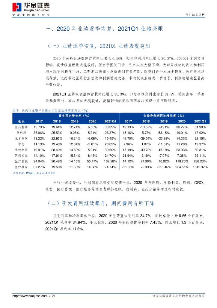 华金证券:医药2020年年报&2021Q1季报小结及前瞻:业绩恢复强劲,高景气赛道表现亮眼.pdf