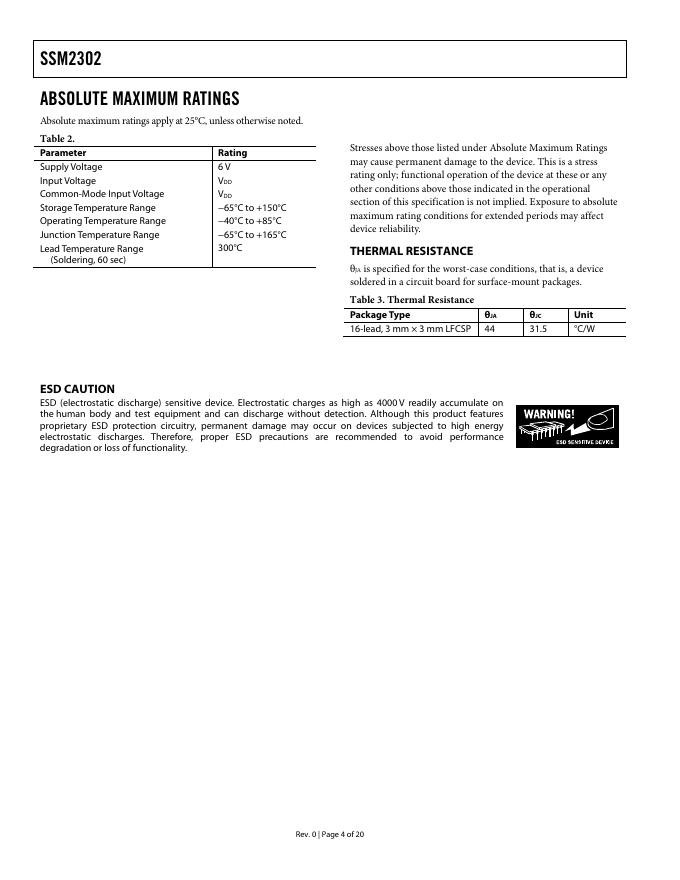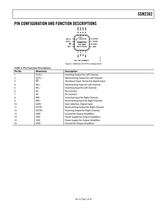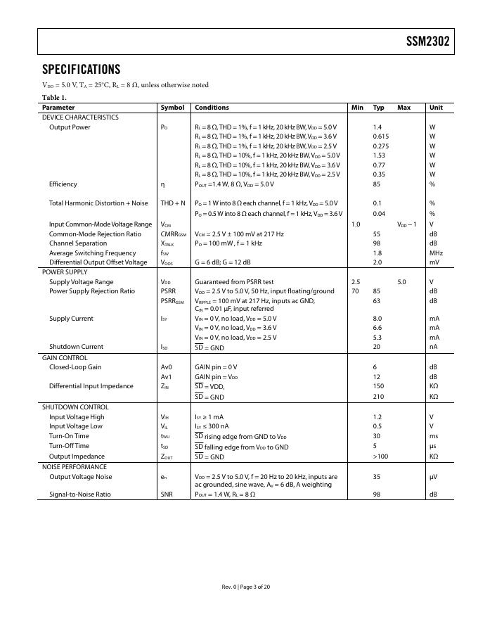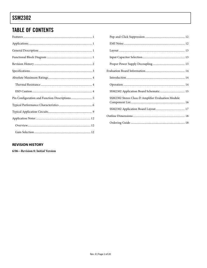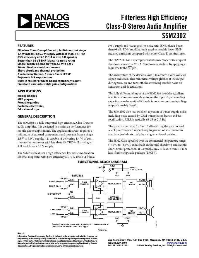 ANALOG DEVICES SSM2302 Filterless High Efficiency Class-D Stereo Audio Amplifier 英文产品 数据手册.pdf