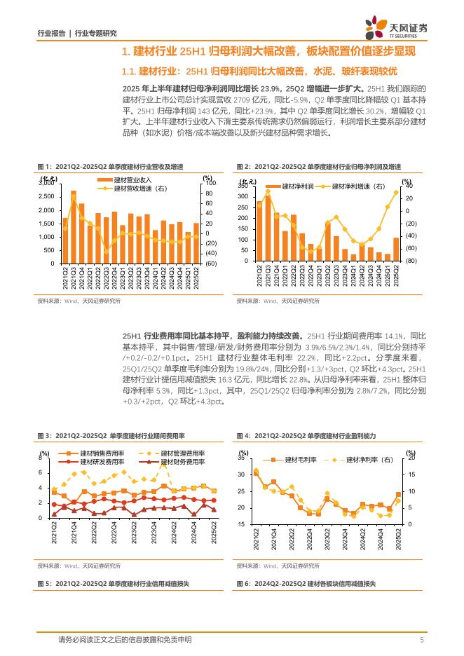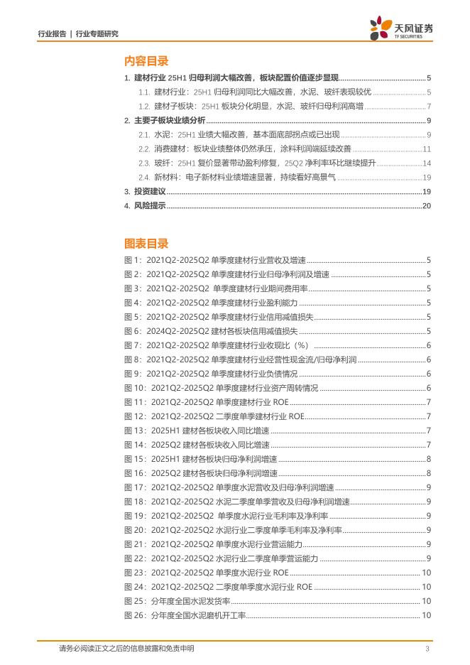 天风证券:建筑材料行业专题研究:2025年中报总结:利润大幅改善,水泥、玻纤表现较优.pdf